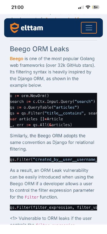 A questão é que não falaram pra ele que isso não previne a subversão das funcionalidades do ORM: o uso da ferramenta exatamente 'as it is' (como ela é), mas para fins maliciosos. É o ORM Injection.