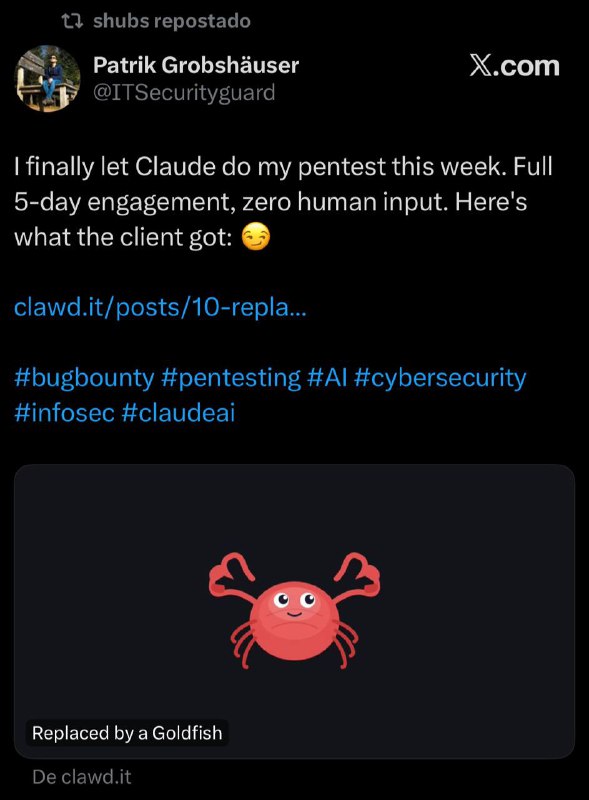 Me perguntaram se eu ia começar a trazer mais assuntos de AI, no sentido de pentest. E realmente vou. Acho que o emprego que mais vai sobreviver depois ali de 2030 é realmente encontrar falhas que AI produzem